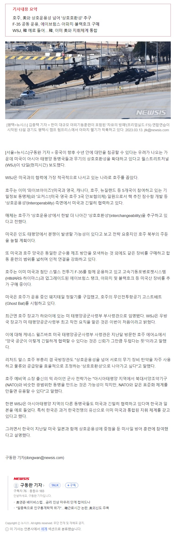 (뉴시스) 美, 아시아태평양 동맹과 무기 ‘상호운용성’ 강화, 중국의 대만 침공 대비 2023년 03월 26일 by issue 쉬운 목차 Toggle 날짜는 2023년 3월 13일(뉴시스) 美, 아시아태평양 동맹과 무기 ‘상호운용성’ 강화, 중국의 대만 침공 대비 날짜는 2023년 3월 13일 (뉴시스) 美, 아시아태평양 동맹과 무기 ‘상호운용성’ 강화, 중국의 대만 침공 대비 원문 보기: https://newsis.com/view/?id=NISX20230313_0002224315&cID=10101&pID=10100 '추천 관련글, 볼보그룹코리아(주) 기계조립 채용2023 전국벚꽃축제 일정 및 개화시기시민이 뽑은 "2023년 1월의 좋은 글" 선정 결과 발표 KBS 전주본부 취재2023. 03. 06 오늘의 경제 KEYWORD