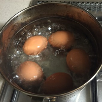 계란이 익으면 찬물에 식힌 후 천천히 계란을 굴려주세요.