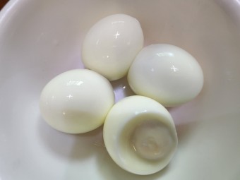 계란을 8분 삶았는데 눅눅하고 부드럽습니다.