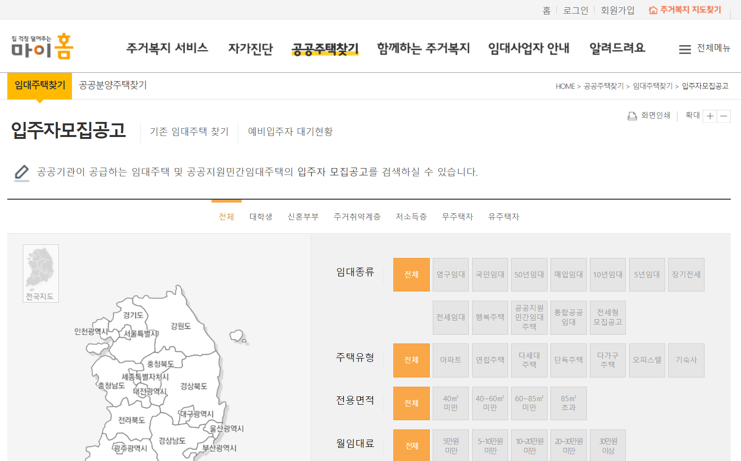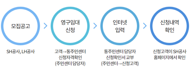 (*주택유형은 도시근로자 가구의 1인당 월 소득의 70%(1인 가구 90%, 2인 가구 80%) 미만으로 영구임대주택 요건을 충족해야 함)