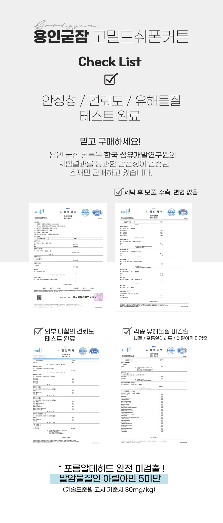 한국섬유개발연구원은 30회 이상의 안정성 테스트를 완료했습니다.