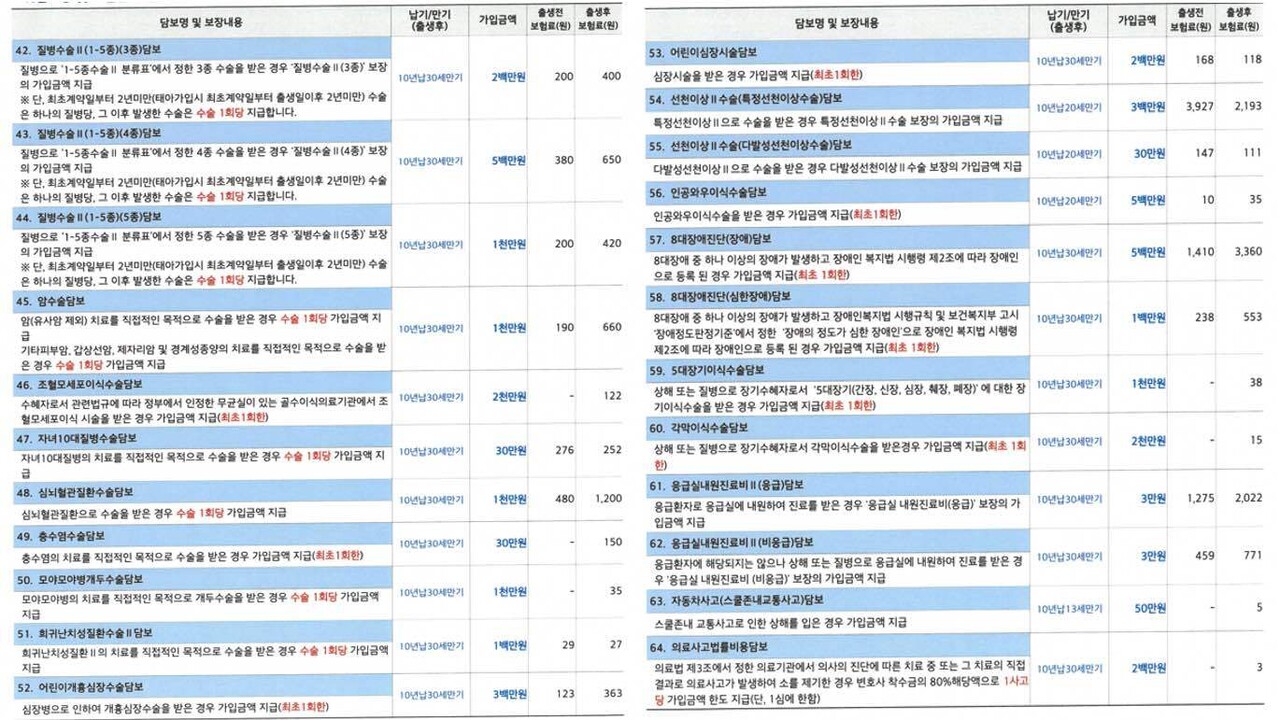 아이들에게 흔히 볼 수 있는 질환은 따로 포함되어 있고 없어도 되는 것은 빼놓았습니다.질병수술과 1~5종, 심뇌혈관 등 작은 것부터 중증질환까지 커버할 수 있도록 하며 선천이상 관련까지 갖추고 있습니다.예전에는 4대 장애였지만 지금은 8대로 범위가 넓어지고 있습니다.응급실 및 저체중과 신생아 관련도 모두 포함되어 있습니다 배상책임은 2020년4월부터 거주지 주소만 있으므로 그때마다 반드시 변경하셔야 하는 단순한 주소변경이 아니므로 담당자에게 꼭 요청해주셔야 불편함 없이 배상책임을 질 수 있습니다다음은 의무화되는 것으로, 어머니(산모)의 내용 중 실제로 도움이 되지 않는 것으로 가장 적은 것을 넣어주세요.4세대 실손보험금은 할인, 할증이 적용됩니다 급여는 80%, 비급여는 70% 적용되며 자기부담금은 급여 20%, 비급여 30%입니다 연차휴가비급여만 계산해서 100~150만원은 100% 300만원은 200% 150~300만원 이상은 300% 할증됩니다블로그에서는 특성상 완전한 설명은 드리지 못하지만 톡으로 말씀해주시면 정확한 설명과 상세내용을 보내드리겠습니다 쉽고 간편하게 비교 후 선택하실 수 있도록 태아보험을 추천드리니 언제든 편하실 때 말씀해주세요블로그에서는 특성상 완전한 설명은 드리지 못하지만 톡으로 말씀해주시면 정확한 설명과 상세내용을 보내드리겠습니다 쉽고 간편하게 비교 후 선택하실 수 있도록 태아보험을 추천드리니 언제든 편하실 때 말씀해주세요
