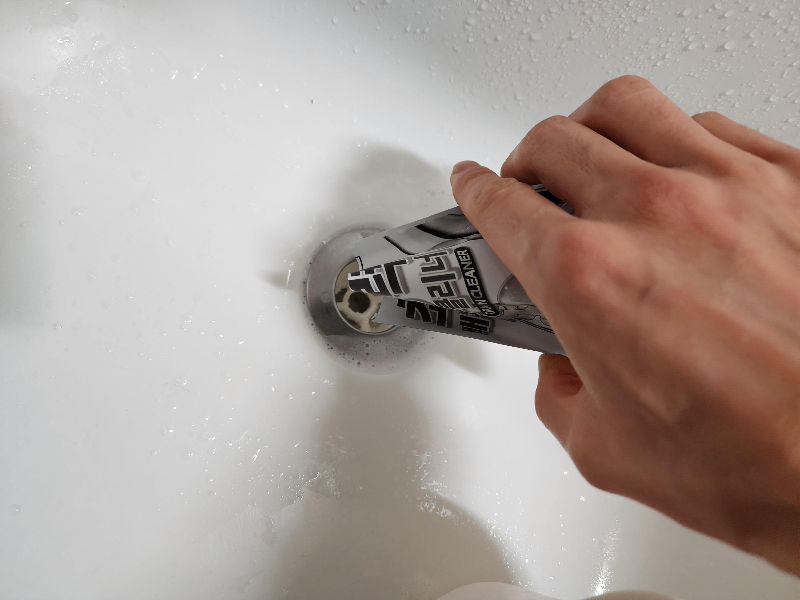 초강력 배수 클리너를 사용하여 욕조 배수구 청소