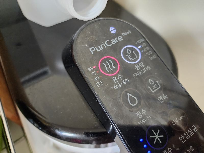 남은 가루를 붓고 마지막으로 정수기의 뜨거운 물을 부었습니다. 처음만큼 거품이 많이 나지는 않았지만 그랬습니다.