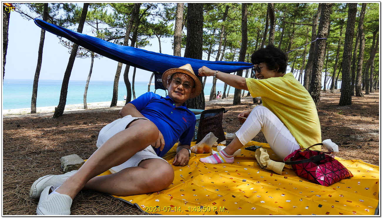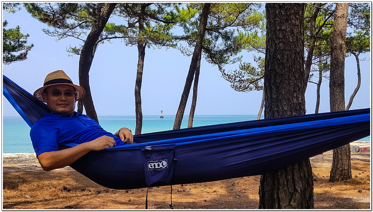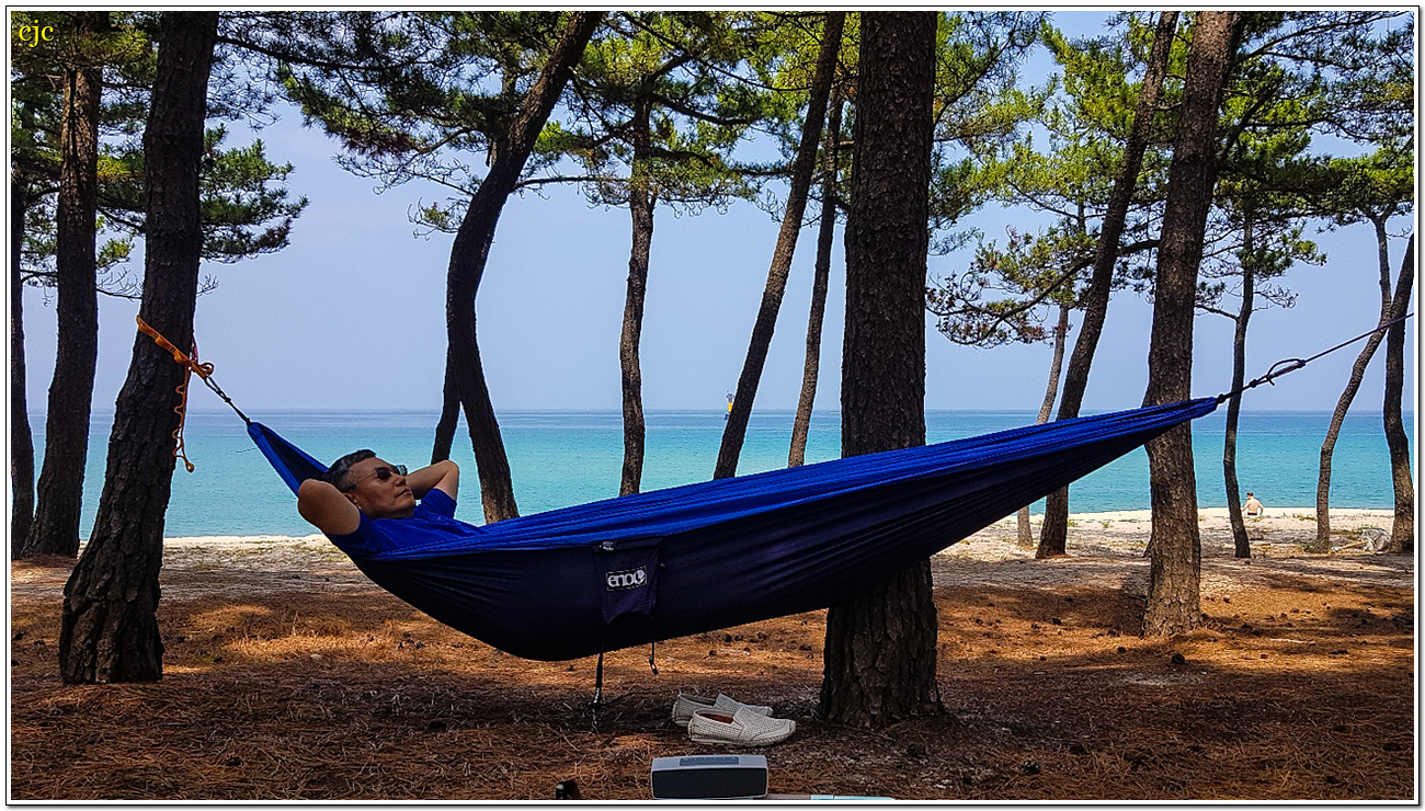 마츠우라해수욕장 소나무 그늘 아래 해먹에 누워