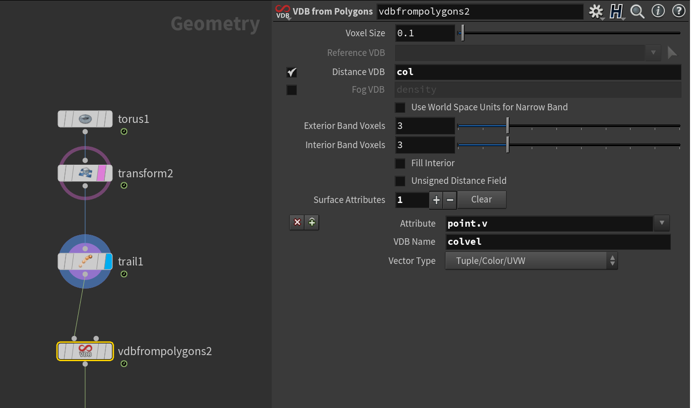 vdbfrompolygons를 사용하여 col이라는 SDF를 만들었습니다.